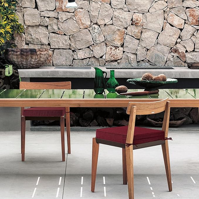 Sunbrella Square Corner Seat Cushions, 19" x 19" x 3", Set of 4, Indoor Outdoor Water Repellent Universal Chair Pads with Ties for Patio Furniture, Garden Dining Chairs, Spectrum Ruby
