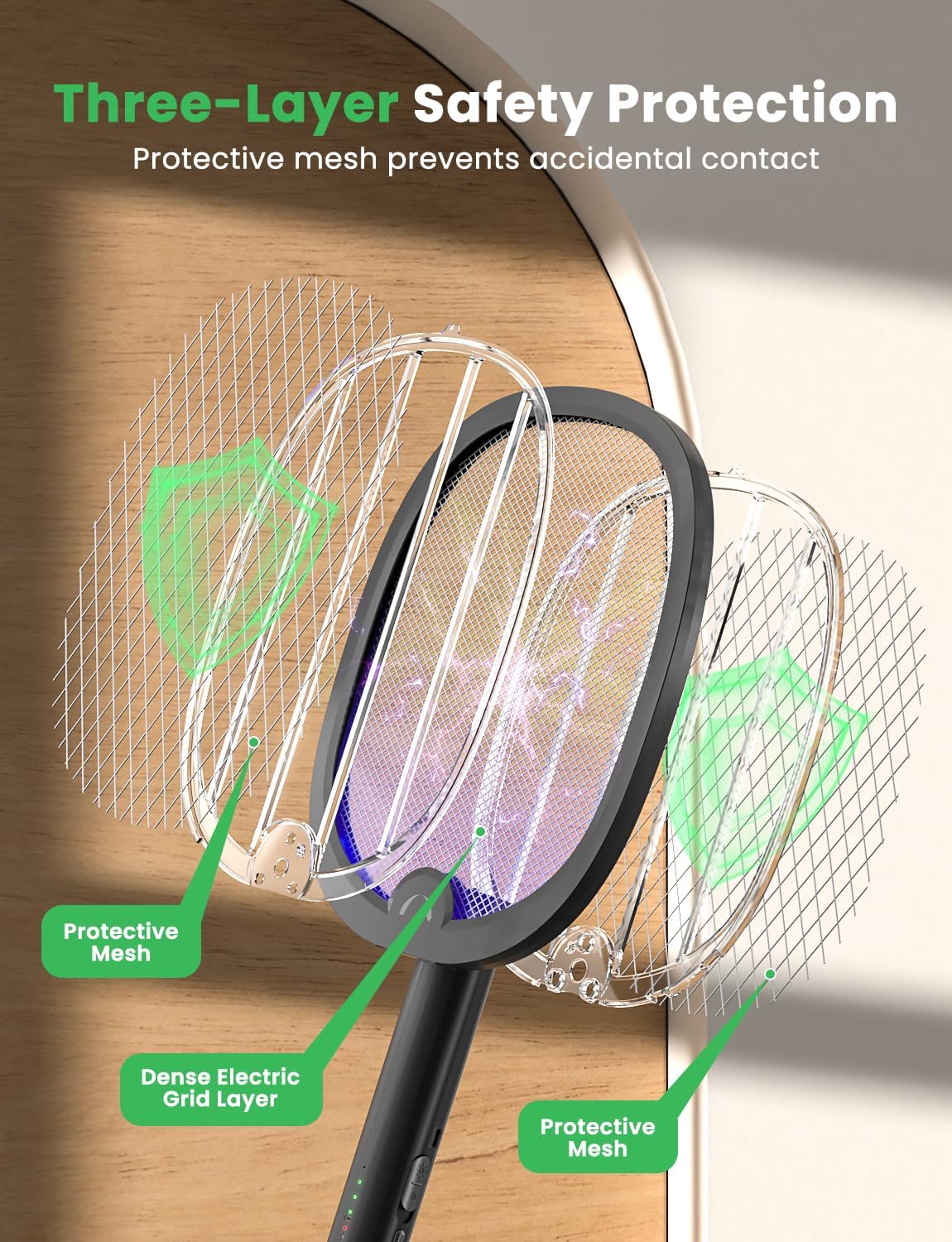 YISSVIC Electric Fly Swatter Foldable Bug Zapper Racket 2 in 1 Mosquito Killer with Attractant Light Rechargeable 1800mAh for Indoor Home Backyard Patio Camping
