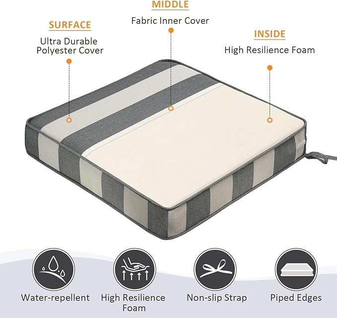 - 【Non-slip Ties and Piped Edge】 The two non-slip ties can be fastened to your furniture to keep the outdoor cushion in place. Some seams are finished with piping, which reinforces the edges and makes the outdoor furniture cushion more stylish.