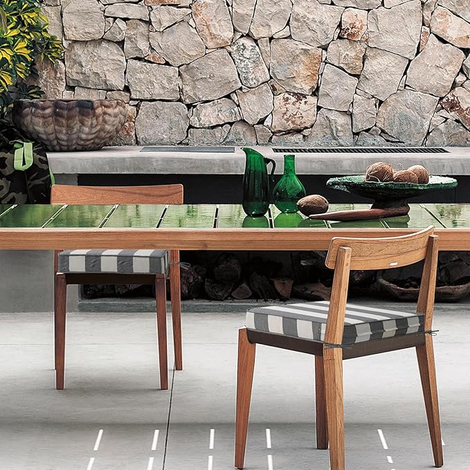 Square Corner Seat Cushions, 19" x 19" x 3", Set of 4, Indoor Outdoor Water Repellent Universal Chair Pads with Ties for Patio Furniture, Garden Deck Dining Chairs, Gray Stripe