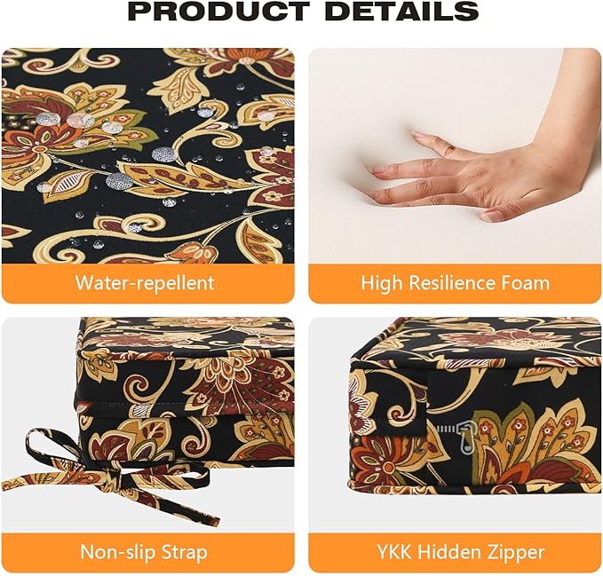 - 【Non-slip Ties and Piped Edge】 The two non-slip ties can be fastened to your furniture to keep the outdoor cushion in place. Some seams are finished with piping, which reinforces the edges and makes the outdoor furniture cushion more stylish.