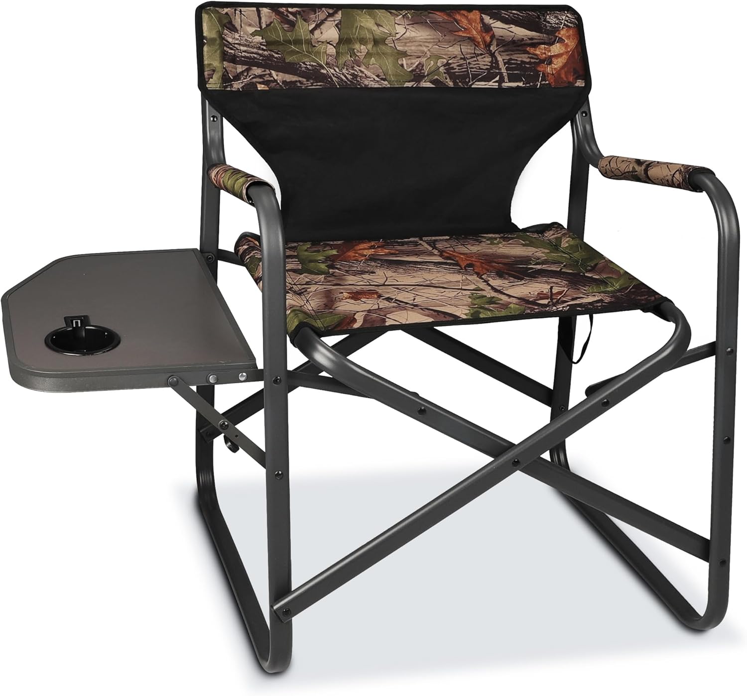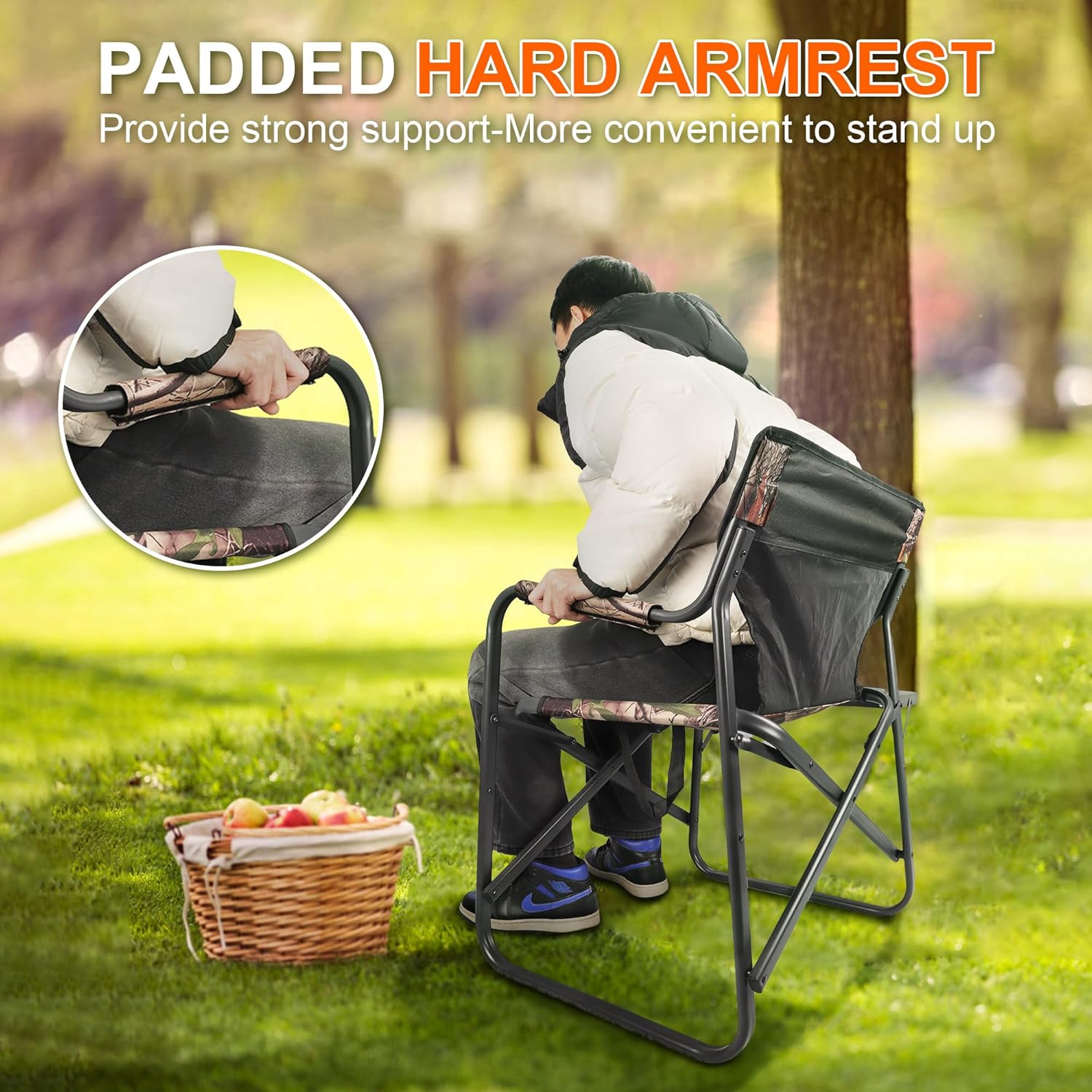 CAMPHILL Directors Camping Chairs-Lightweight Folding Lawn Chairs with Side Table-Outdoor Foldable Camp Chair for Hunting Fishing Travel-Camouflage,Heavy Duty Support 300lbs