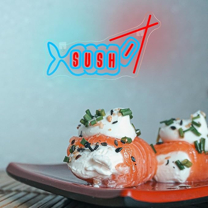 - High Quality Neon Sign: Sushi neon sign neon light signs are made of silicone tube+led neon strips +acrylic back plate. Led neon signs is bright, noise free and energy-saving,5V low voltage, long life, no risk of too hot or glass damage.