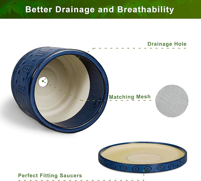 - Optimal Drainage: The ceramic plant pot indoor with drainage holes and saucers ensures optimal water flow and air circulation, keeping your plants growth while avoiding excess water from spilling and staining your surfaces