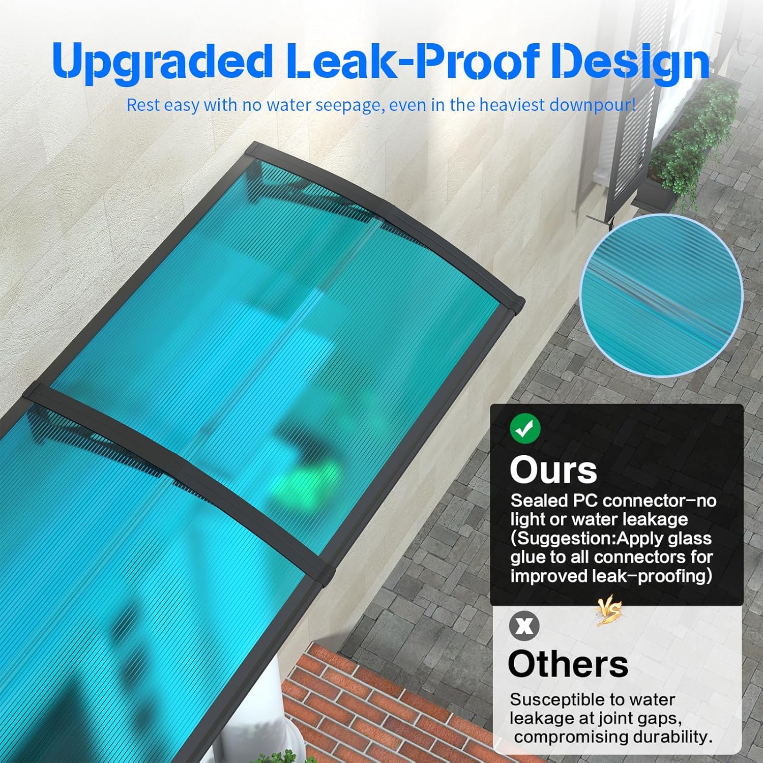 - Upgraded Leak-Proof Design: Our door awning features an advanced sealing system to prevent water leakage through the joints, ideal for awnings for doors needing strong waterproof protection. For an even better result, we recommend applying glass glue during installation (glass glue not included),Ensure your outdoor awning are better able to remain leak-proof even in heavy rain