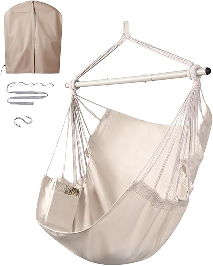 - Weather-Resistant Waterproof Cover: Protect your hammock chair when not in use with the included waterproof cover. Designed with a Zipper Waterproof Flap and magic tape bottom design, the cover keeps your chair dry, clean, and safe from rain, dust, dirt, and UV damage, prolonging the life of your swing