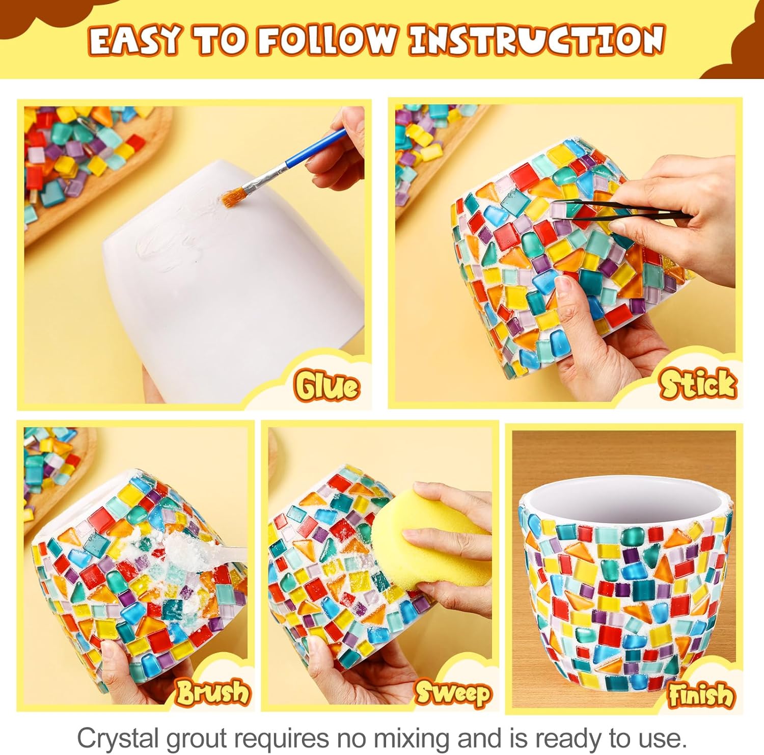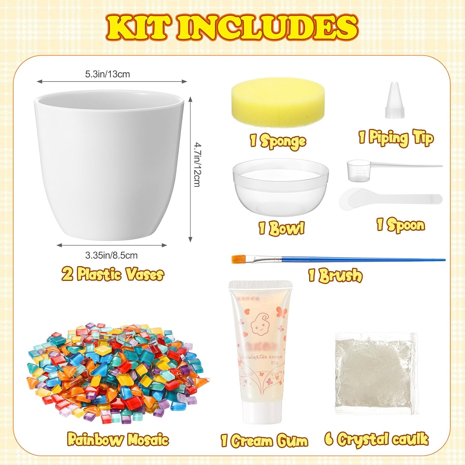 - Complete Mosaic Vase Craft Kit: everything you need to make these mosaic craft comes in the kit (grout and all) 2 vases, mosaic tiles, sponge, cream glue, scraper, distribution bowl, gap Filler, spoon, and brush! If this is your first painting, it can bring you a different painting experience