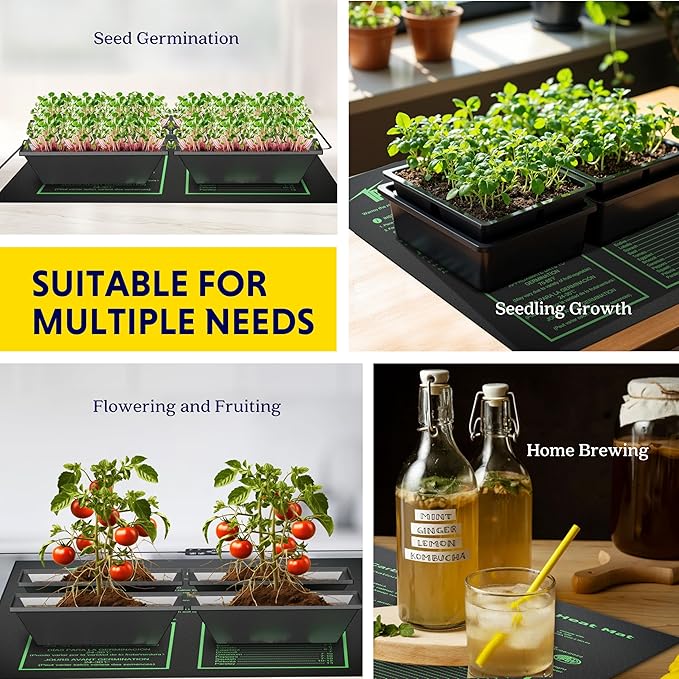 - Dual LED Thermostat: Simultaneously display the real-time and set temperature, which can be adjusted to the required temperature more accurately, a widely range of temperature 32℉~122℉making it the best choice for temperature-sprouting seeds