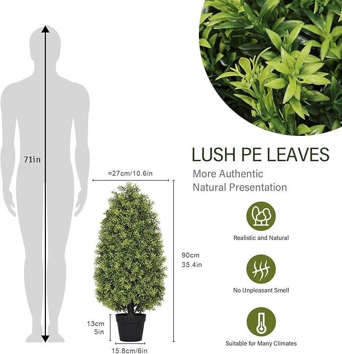 - UV-Resistant & Weatherproof: Designed as durable faux plants outdoor, these artificial topiary for outdoors withstand sunlight, rain, and wind, keeping their vibrant green color year-round