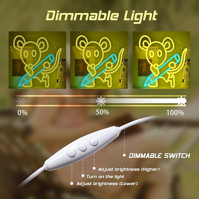 Pencil Mouse Neon Sign Yellow Led Neon Signs Classroom Neon Lights for Wall Decor Dimmable Light Up Sign for Classroom Bookstore Library Bookish Museum Teen Gifts (USB Powered 5V/2A)