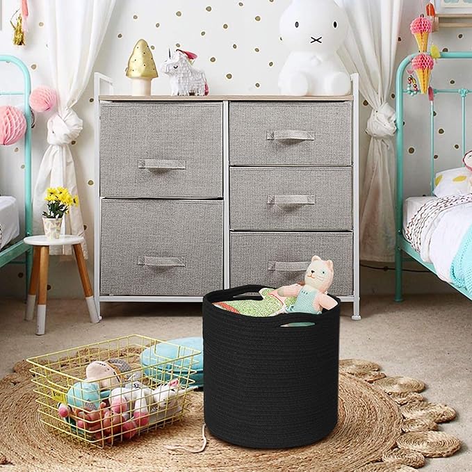 Cotton Rope Plant Basket, Woven Basket Planter for 11 inch Pot, Round Indoor Tree Pot Cover, Storage Bin Organizer, Modern Basket for Plants and Home Decor, 12.5”X12.5”, Black