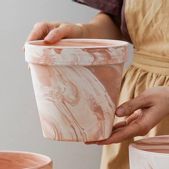 - Unique Macchiato Design - Each terracotta plant pot is crafted by hand, blending white and red clay to create a beautiful macchiato effect. The spontaneous mixing process ensures no two pots are exactly alike, giving each one its own distinctive pattern and character. The result is a stunning design that adds personality to any plant.