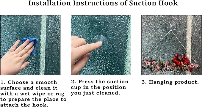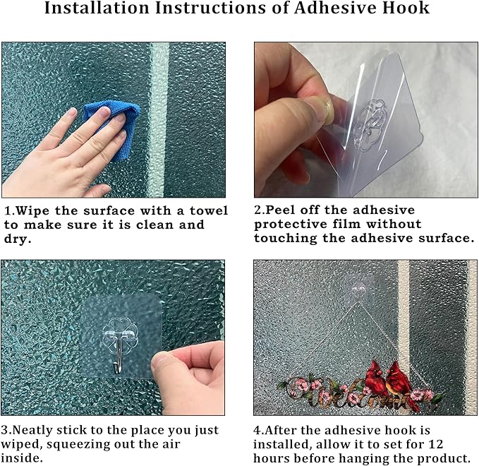 - Easy to Hang with Multiple Hooks:This cardinal stained glass suncatcher is designed for easy hanging. The package includes both suction cup hooks and adhesive hooks, allowing you to hang your cardinal suncatcher stained glass wherever you like. No need for additional hardware—just choose the perfect spot in your window or wall, and enjoy the vibrant display