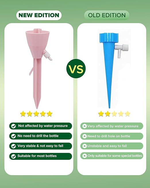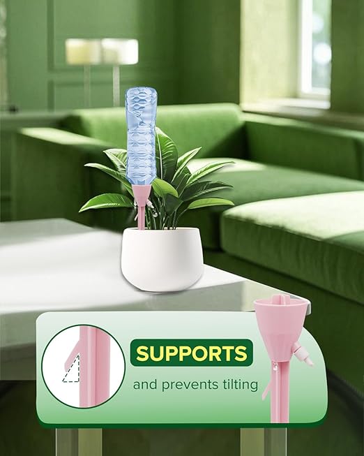 - 【EASY TO USE】Our self watering planter insert with a bracket is made of high-quality PP plastic. The automatic plant waterer requires no complicated installation and is compatible with most beverage bottles on the market, eliminating the need to pierce holes. Simply align the holder with the bottle mouth and insert it, then insert these automatic watering devices into the soil