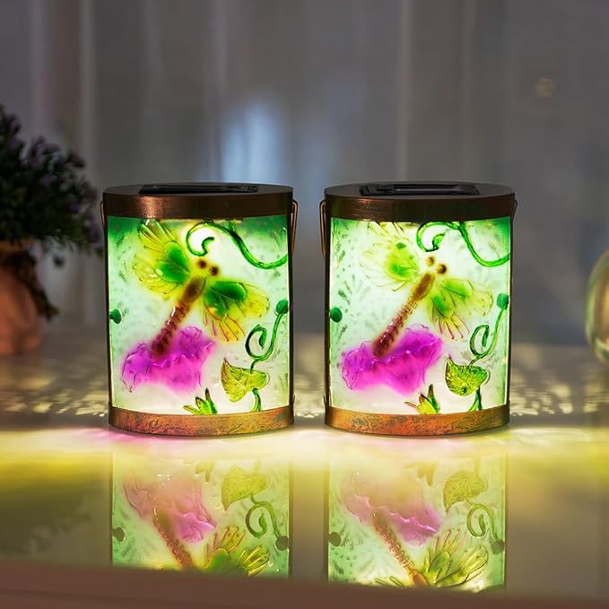 - Package Included: 2 x dragonfly outdoor lanterns. The solar outdoor lanterns can create a warm and romantic atmosphere, adding fun to your garden life and attracting your family and friends