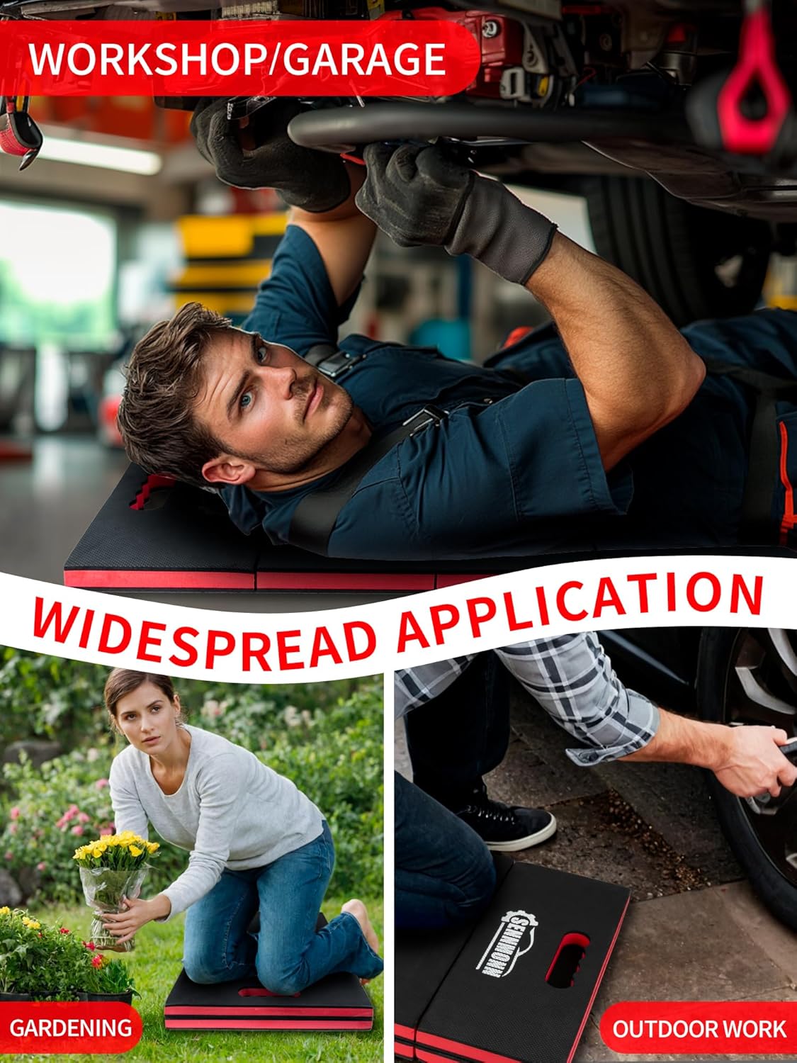 - ✅【Multi-purpose Folding Mat】 Fully unfolded size is 47.3’’x17.4’’x1.2’’(1200x442x30mm); Folded into two layers size is 26’’x17.4’’x2.4’’(608x442x60mm); Fully folded size is 17.4’’x8’’x7’’(442x198x180mm).Ideal for workshop,gardening,cleaning,outdoor activities,etc. Or anyone who needs to lay/kneel/sit/stand on it.