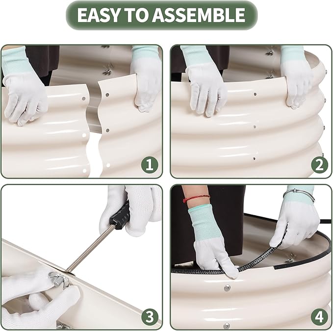 - 【High-Quality Materials & Durable】 Made from 0.7mm metal panels with double-layer anti-corrosion, this outdoor raised garden bed features a robust oval-shaped design for added strength and durability. Resistant to rust and corrosion, it provides a long-lasting gardening solution that can be reused for many years, ensuring a sustainable and reliable space for your plants to thrive