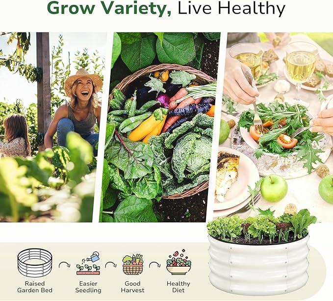 - 【Smart Space-Saver】 GreatBuddy 2x2x1 ft Raised Garden Bed designed for eco-conscious urbanites and fresh-food-loving families. Its crisp white finish effortlessly blends into any outdoor setting—modern patios, rustic balconies, or lush backyard corners. Arrange multiple round galvanized raised garden beds to create modular green zones that boost curb appeal while optimizing your gardening space