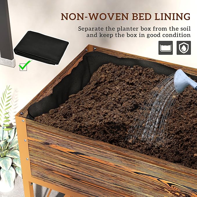 Outsunny Raised Garden Bed with Galvanized Steel Frame, Storage Shelf and Bed Liner, Elevated Planter Box with Legs for Vegetables, Flowers, Herbs, Dark Brown
