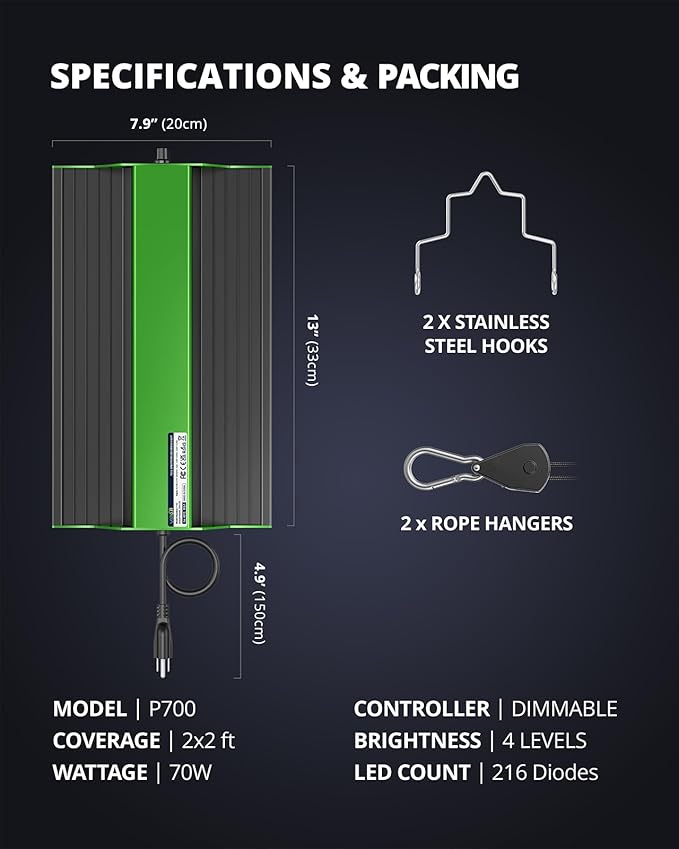- HIGH PAR & LOW ENERGY: Enjoy the power of a 150W HPS/MH light while only using 70W! This energy-efficient plant light provides excellent performance for a 2x2 ft vegetative area, allowing you to save on electricity without compromising on plant growth