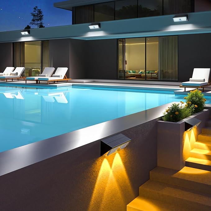 - 【High - Efficiency Solar Panel】: Outdoor wall solar lights featuring a top-grade monocrystalline silicon solar panel with an energy conversion rate of up to 20%, this motion security light ensures rapid charging under direct sunlight, enabling longer illumination periods. Perfect for enhancing the safety and visibility of your outdoor spaces, these LED motion lights are ideal for illuminating areas such as front doors, gardens, fences, yards, garages, decks, stairs, patios, backyards, and more