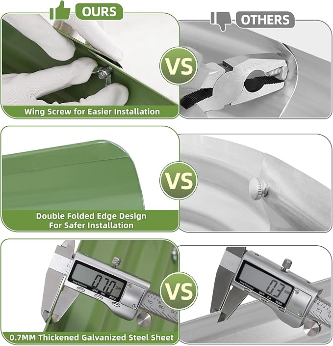 - 【 Not easy to deform】 Our oval outdoor garden box is made of 0.6 mm double-layer corrosion-resistant galvanized sheet, and the surface is coated with anti-rust coating to ensure long-term use. Equipped with optimized support rods, easy to install and flexible, durable and not easy to break, providing excellent support after soil filling.
