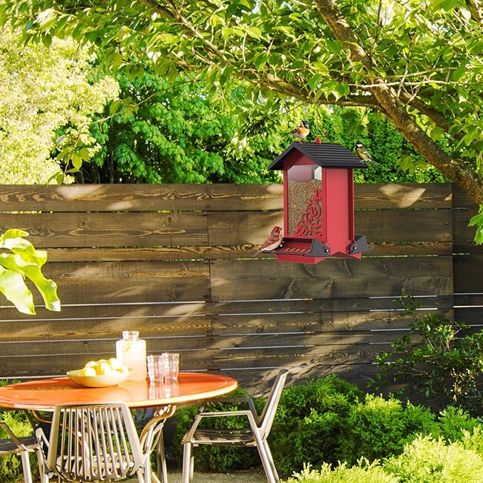 - 【Metal Wild Bird Feeders】The bird feeders for outside is made of all metal, chew proof. The top cover of the house bird feeder is securely closed, and even smart squirrels won't open the cover. The surface coating of the all metal wild bird feeder not only adds a rural style, but also can be ensure rust-proof for all-weather durability.