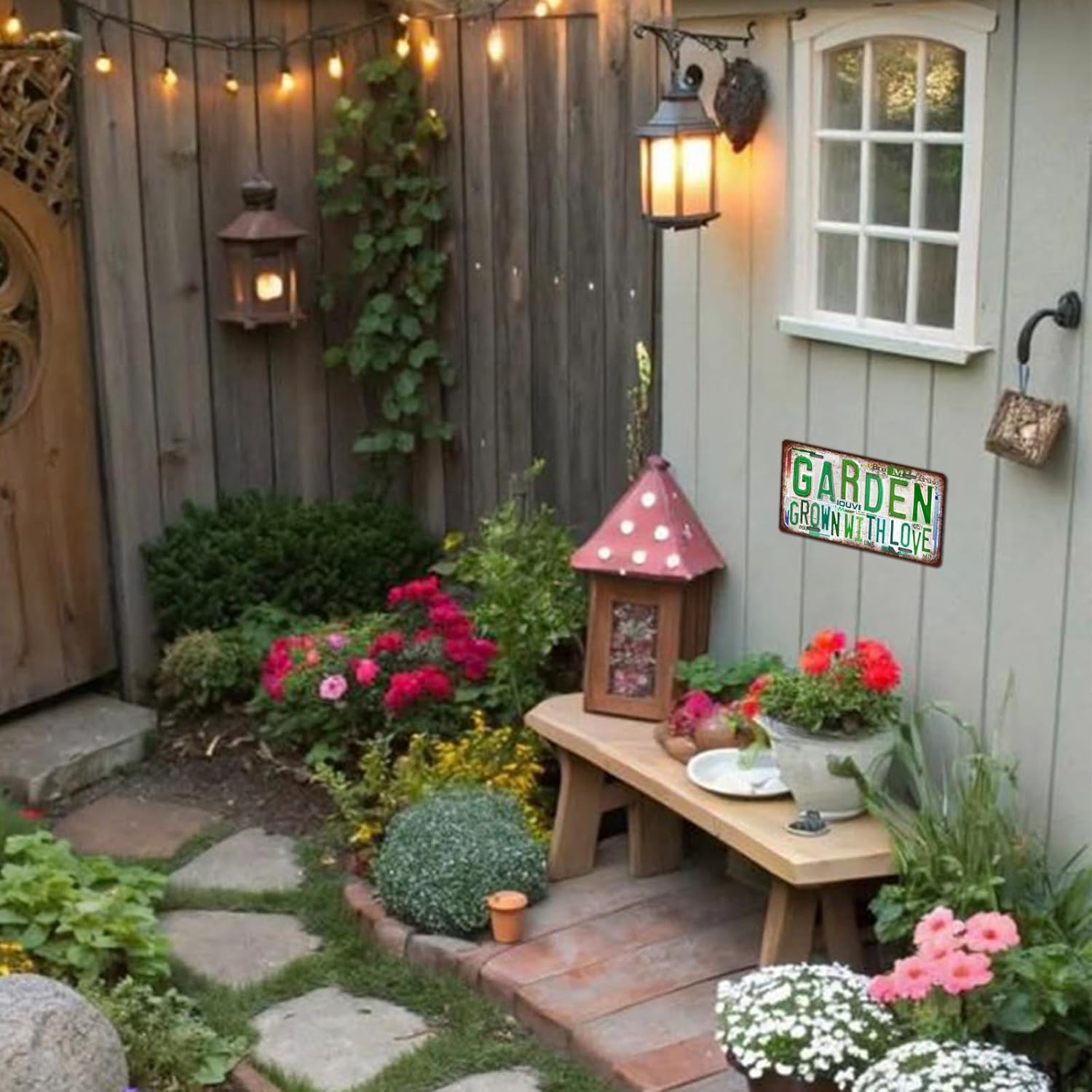 Vintage Garden Metal Tin Sign License Plate Wall Decor for Garden Lover 12 x 6 Inches - fruit herbs veggies