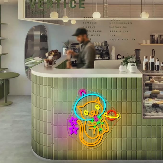 - Playful Design: This cat bubble tea neon sign features a cute kitten sipping on a cup of pearl milk tea, adding a touch of whimsy and fun to any room, making it perfect for bedrooms, living spaces, cafes, or bubble tea shops.