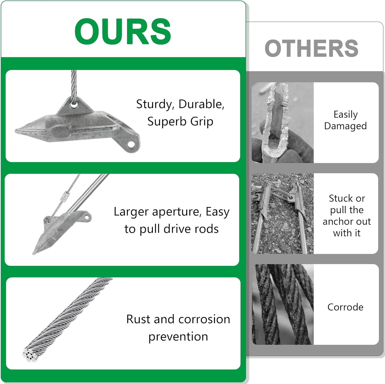 - 【Well-made and Durable】The matching drive bar fits well with the ground anchor, so there is no need to worry about getting stuck in the earth anchor and not being able to remove it, or taking out the ground anchor together. Constructed with stainless steel cables and galvanized carbon steel anchors for durability, rust and corrosion resistance.