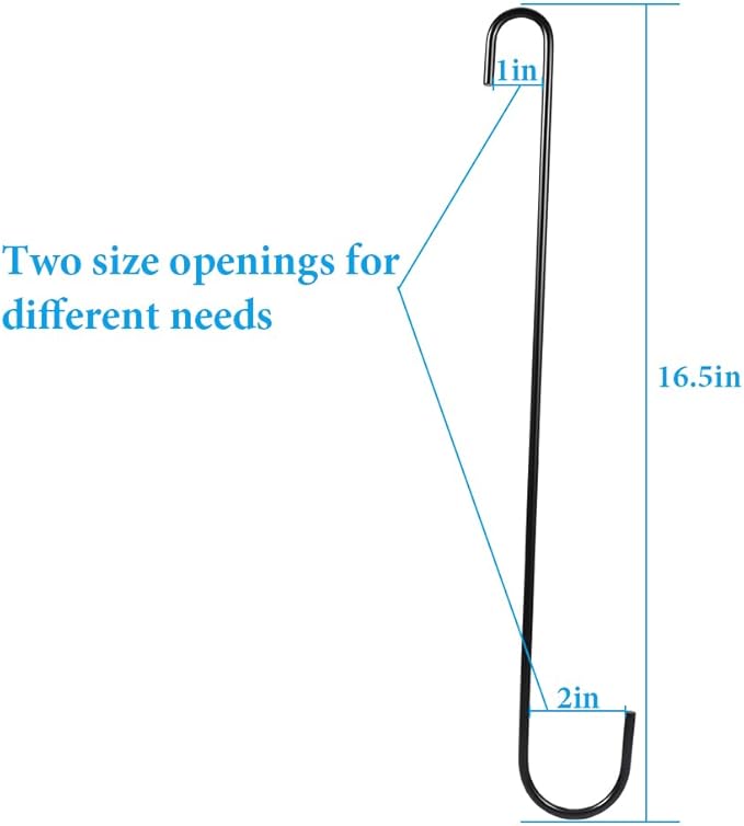 Vindar 4 Pack 16.5 Inches Bird Feeder Hook Extra Large S Hooks Heavy Duty Hooks Hangers for Tree Branch, Bird Feeder, Hummingbirds Feeders, Bird House, Office, Wind Chimes, Lanterns, Gardening Tools