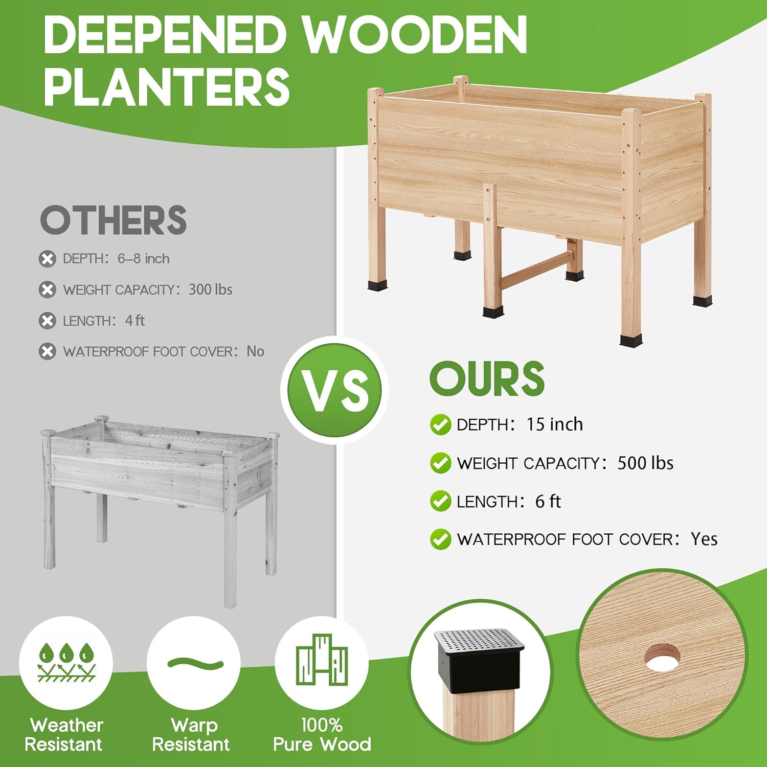 - Built-in Drainage Holes: The garden box features drainage holes at the base, preventing water accumulation, maintaining proper water flow, and promoting healthier plant growth.