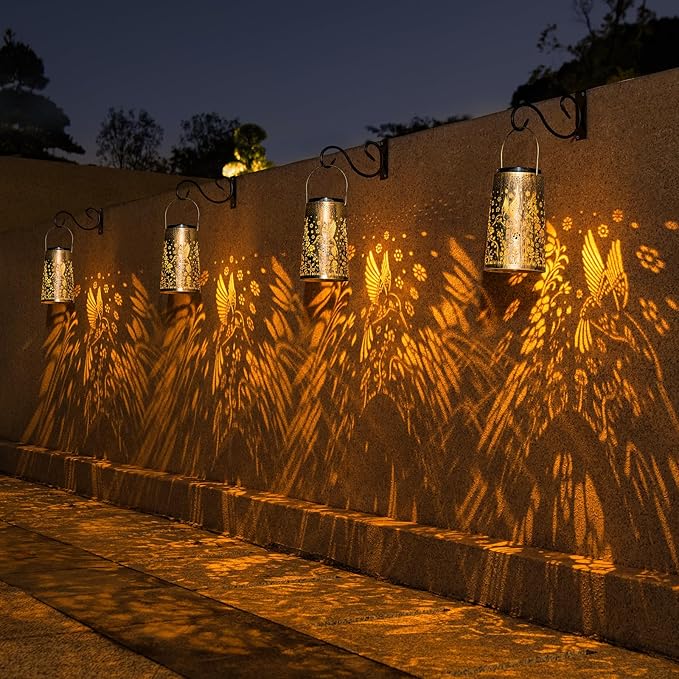 - 【Perfect Garden Decor And gift】Unique openwork design projects a hummingbird pattern that symbolizes good luck and wisdom, making outdoor patio or home decor more lively and vivid. Solar lanterns outdoor waterproof is a unique gardening gifts for women mom grandmom and friends at Mother's Day, Christmas, Thanksgiving, birthday, festivals, party