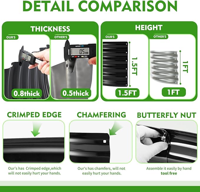 - Sleek Design: The Black color and clean lines of the galvanized raised bed add an aesthetic appeal to your garden or outdoor area. It blends well with the surroundings, adding a touch of elegance to your plantings