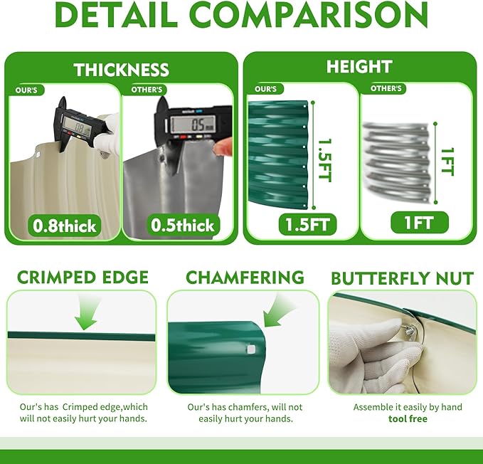 - Sleek Design: The Green color and clean lines of the galvanized raised bed add an aesthetic appeal to your garden or outdoor area. It blends well with the surroundings, adding a touch of elegance to your plantings