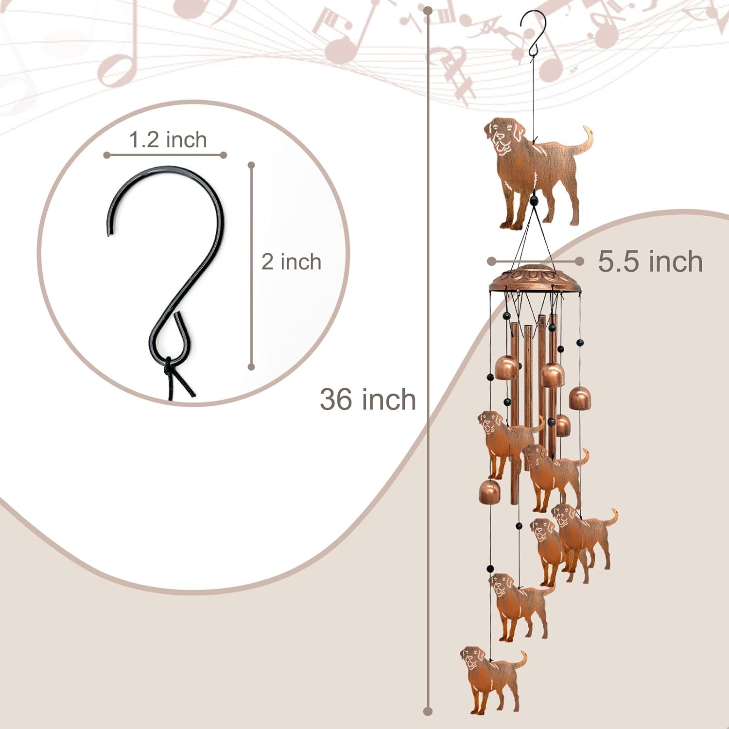 - Durable Material: Outdoor labrador wind chimes are made of high-quality metal. The structure is sturdy and durable, with excellent weather resistance, and can be hung outdoors for a long time. These wind chimes can be hung directly without installation