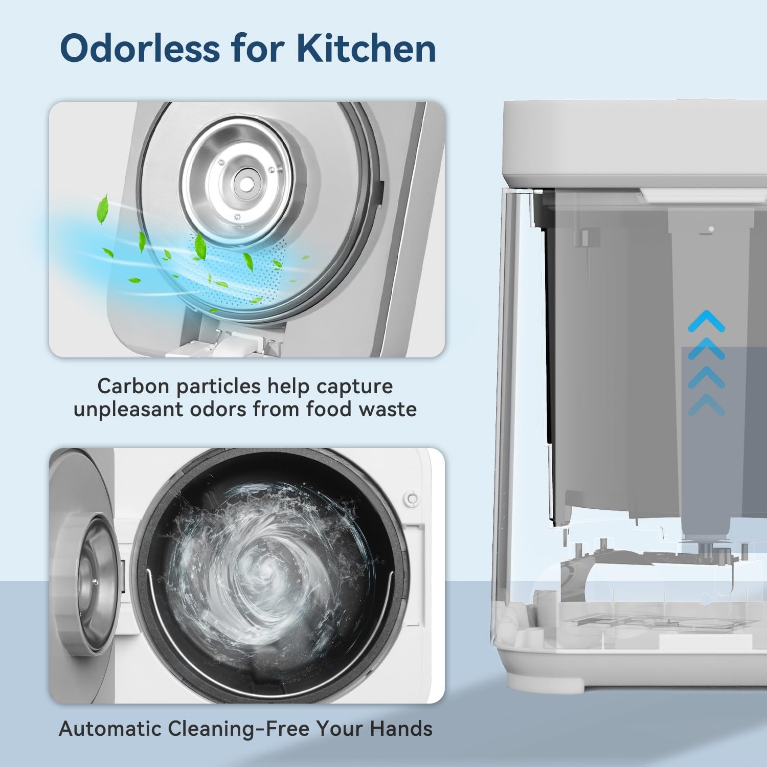 - 【Intelligent Power Saving】 Don't consume excessive electricity during the processing of kitchen waste, 1.2 kWh for a full cycle.