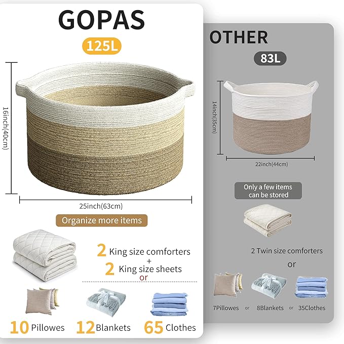 - Extra large Size Multi-Purpose Blankets Basket: 25" x 16", Our Large woven rope basket for storage originally designed as a Blanket storage basket but can be used for more. You can use it as large laundry basket, large storage basket, toy basket for kids, baby toy storage basket bin.Keep in the kids room, family room, or any room in the house that could use extra storage