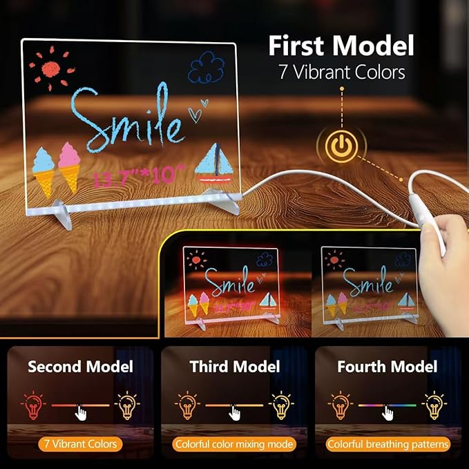 - 2025 Upgraded LED Drawing Board: This LED drawing board with colors is crafted from premium water-soluble material. Its surface is designed to be scratch-resistant, so it won't get scratched even when wiped. The perfect 13.7“x10” size provides plenty of space for creativity. Additionally, it has 20 built-in holes with adjustable buttons that allow you to control the brightness of the light or flashing speed, making it an ideal choice for those seeking an experience with the LED drawing board for kids.
