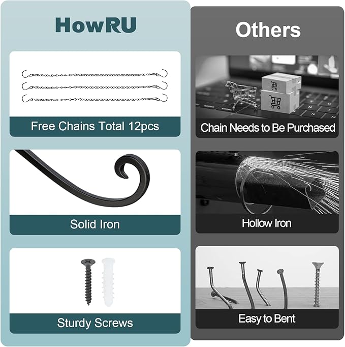 - 【Customer-Centric Convenience】 Free iron chains provide you with more diverse ways to use our product. HowRU promises that our hanger bracket and chains are premium. If you have any questions about our products in the purchase process, please feel free to contact us. We will give you a satisfactory reply as soon as possible.