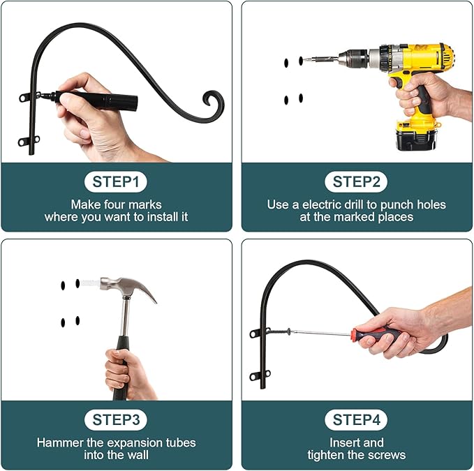 - 【Stable Plant Hanger Hook】 Four screws provide high load-bearing capacity and higher stability. Iron screws can not only withstand more weight without deformation, but also ensure that the plant wall hanger is more stable and not easily tilted. Plant hanging hook can better cope with windy weather, so it is suitable for outdoor use and is a good helper for decorating your courtyard.