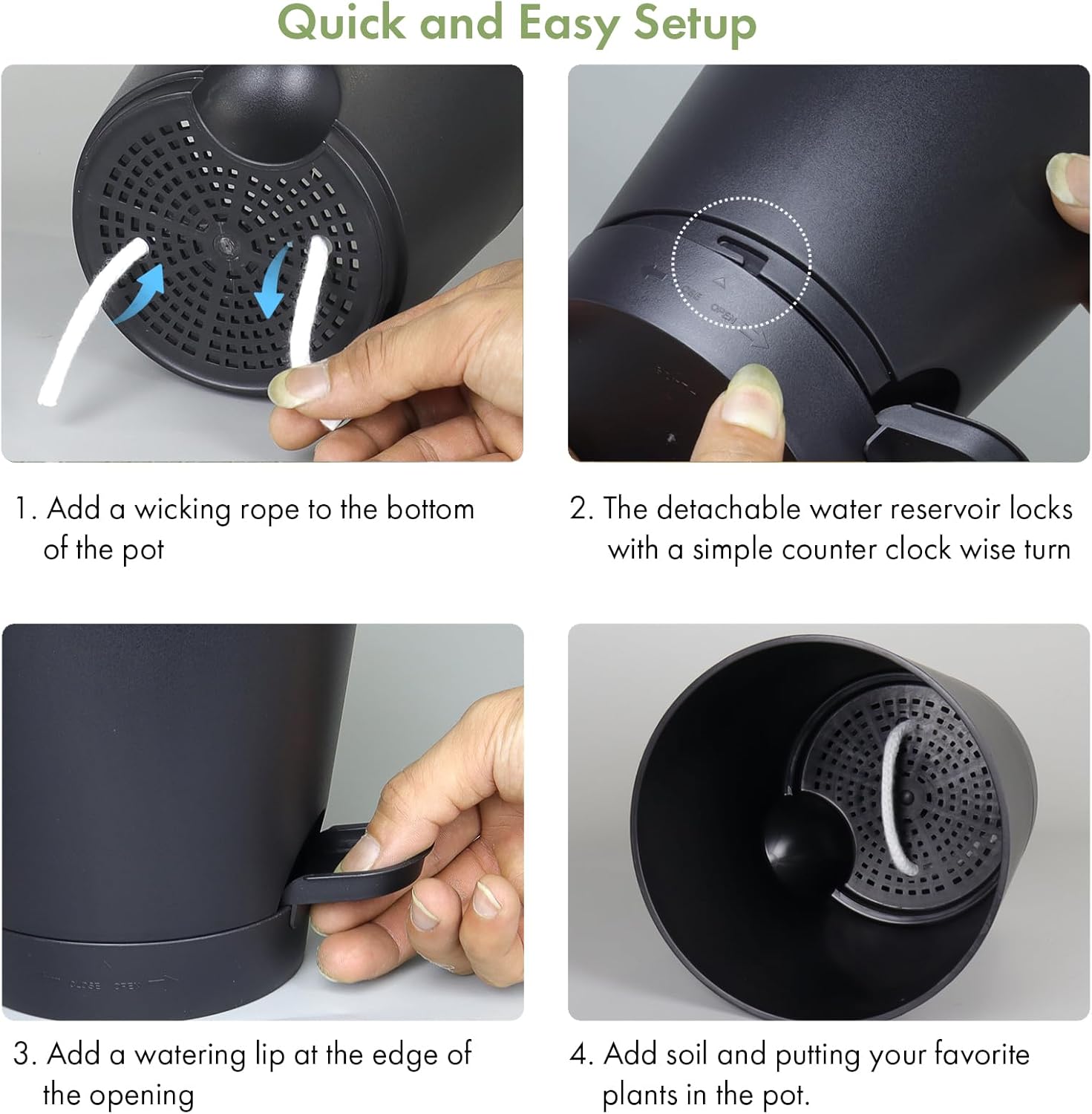 - 【Self-Watering Design】These self watering pots for indoor plants are designed with a wick rope that draws water from the reservoir at the bottom. The set of 6 plastic self watering planter provides an optimal air circulation system for plant roots