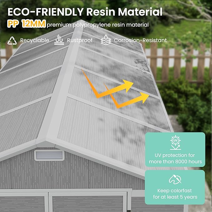 - ULTRA-DURABLE 12MM RESIN WALLS: Double-wall panels with steel frames survive -40°F to 176°F temperature swings. Tested for 8,000+ hours UV resistance (5-year fade-free guarantee) and saltwater corrosion—ideal for coastal homes or Midwest storms
