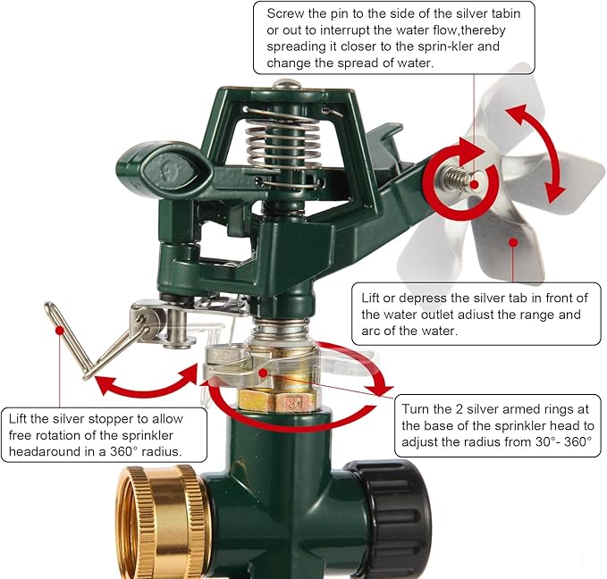 - Durable & Eco-Friendly Design: The green garden sprinkler is crafted from high-quality green zinc alloy, ensuring exceptional strength, corrosion resistance, and longevity. Built to endure harsh outdoor conditions, it resists rust, deformation, and wear, making it a reliable choice for year-round use. The IRRSTPRO sprinkler maintains peak performance even under intense sun or rain.