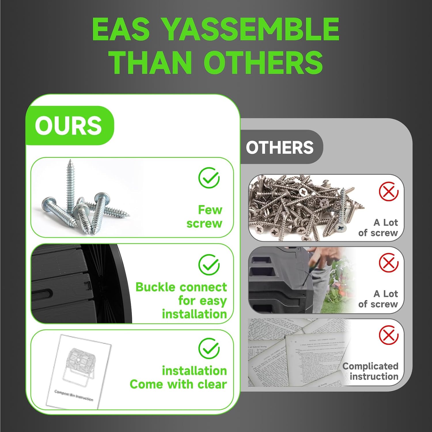 - 【EASY TO USE】: Our outdoor composter has a large opening with a removable sliding door that makes it easy to add waste or remove compost. The compost bin is designed with a secure seal to keep rodents, insects and other pests out, ensuring a safe and efficient composting process.