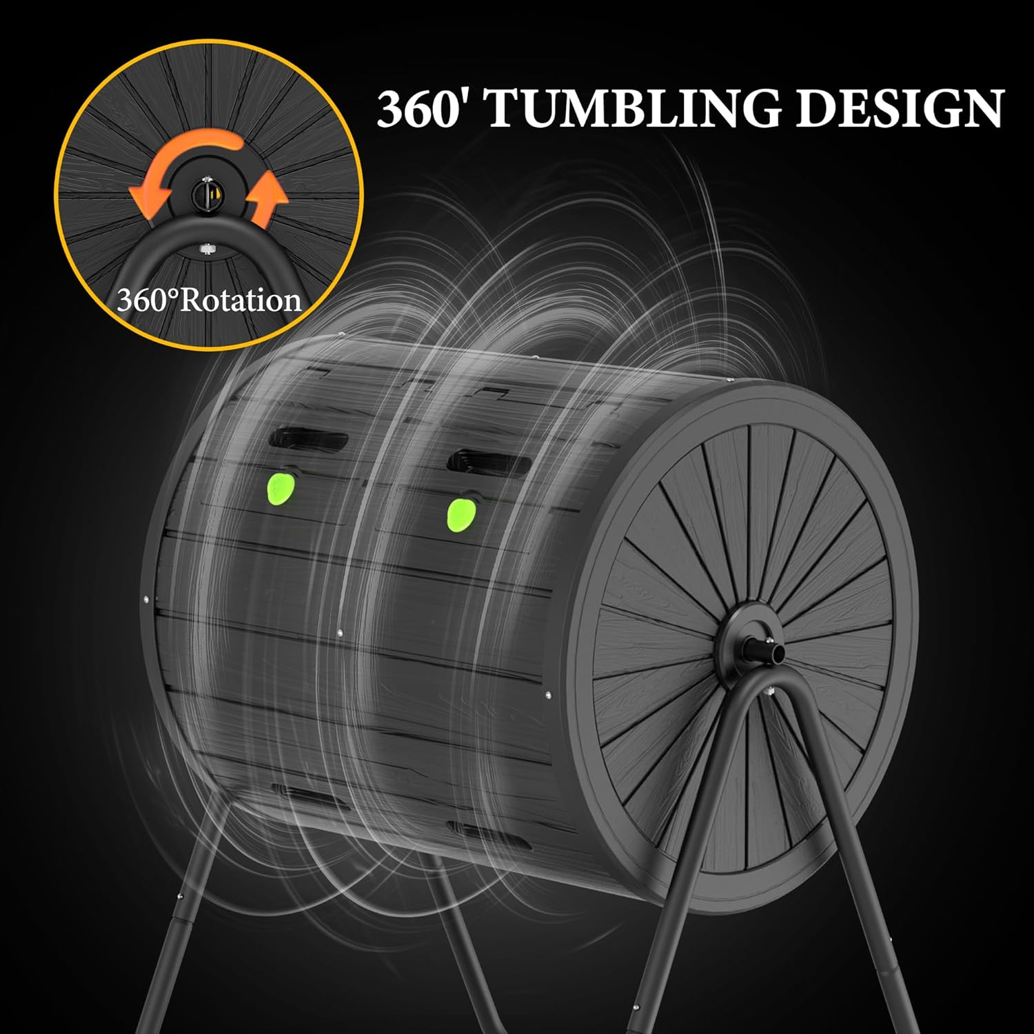- 【360° Tumbling Design】: Gone are the days of manually mixing and digging compost. The combination of deep baffles and deep slots in the panels allow the compost bin to rotate smoothly, facilitating the composting process. The large opening and removable door make it easy to add scraps or clippings and remove finished compost.