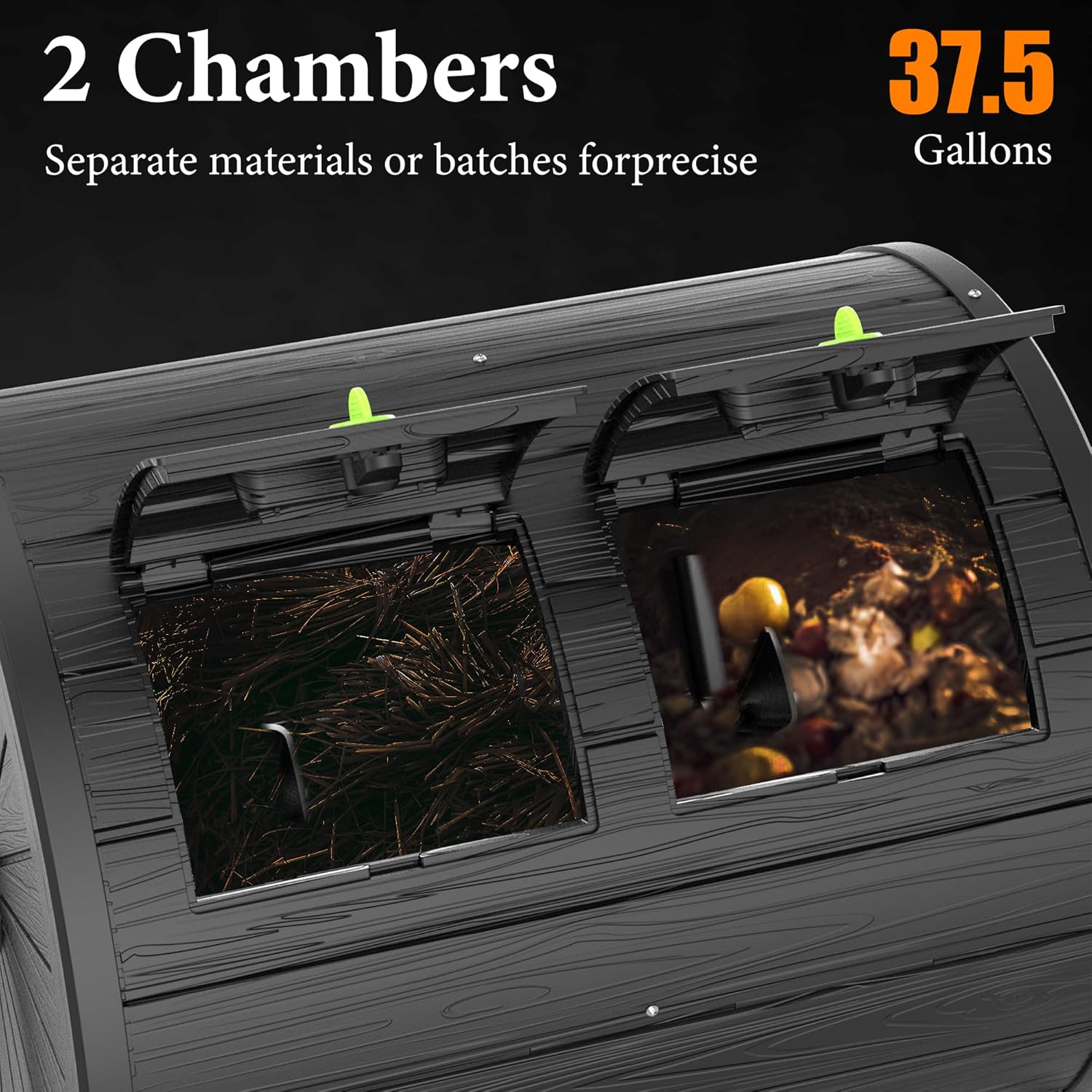 - 【Optimized Aeration】: The tumbler has vents or air holes and two sliding doors that allow the user to control the flow of oxygen into the compost. This design element accelerates decomposition for faster, more efficient results.