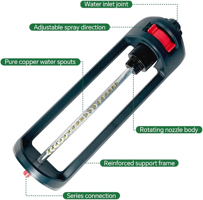 - Heavier Base - The base weight increased by 0.66 pounds, new upgrade iron galvanizing iron galvanized counterweights at the bottom, improving the stability and durability of the garden sprinkler.
