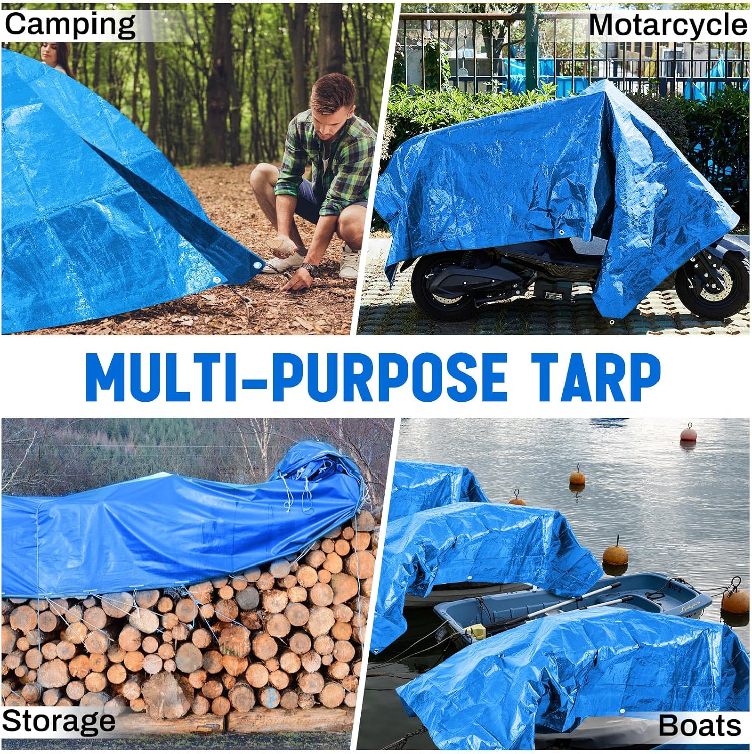 - 1 Pack Set: you will get 1 pack blue waterproof tarps, each one tarp is about 5.5 mil thick; Whether it's to replace an old tarp or for various outdoor activities, the 1 pack set can get you covered, provide convenience and color for your life