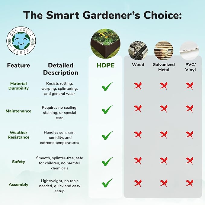 - DURABLE & WEATHER-RESISTANT DESIGN: Constructed from heavy-duty HDPE plastic, this raised garden bed resists warping, cracking, and rotting, offering season-long durability. No rusting, no splinters, and no painting—just dependable outdoor gardening season after season.